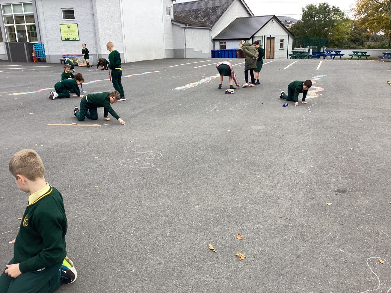 Primary 6 had fun drawing snakes. First, they drew snakes, estimating, 1.5m and 2.5m before measuring and then accurately drawing snakes of those lengths.